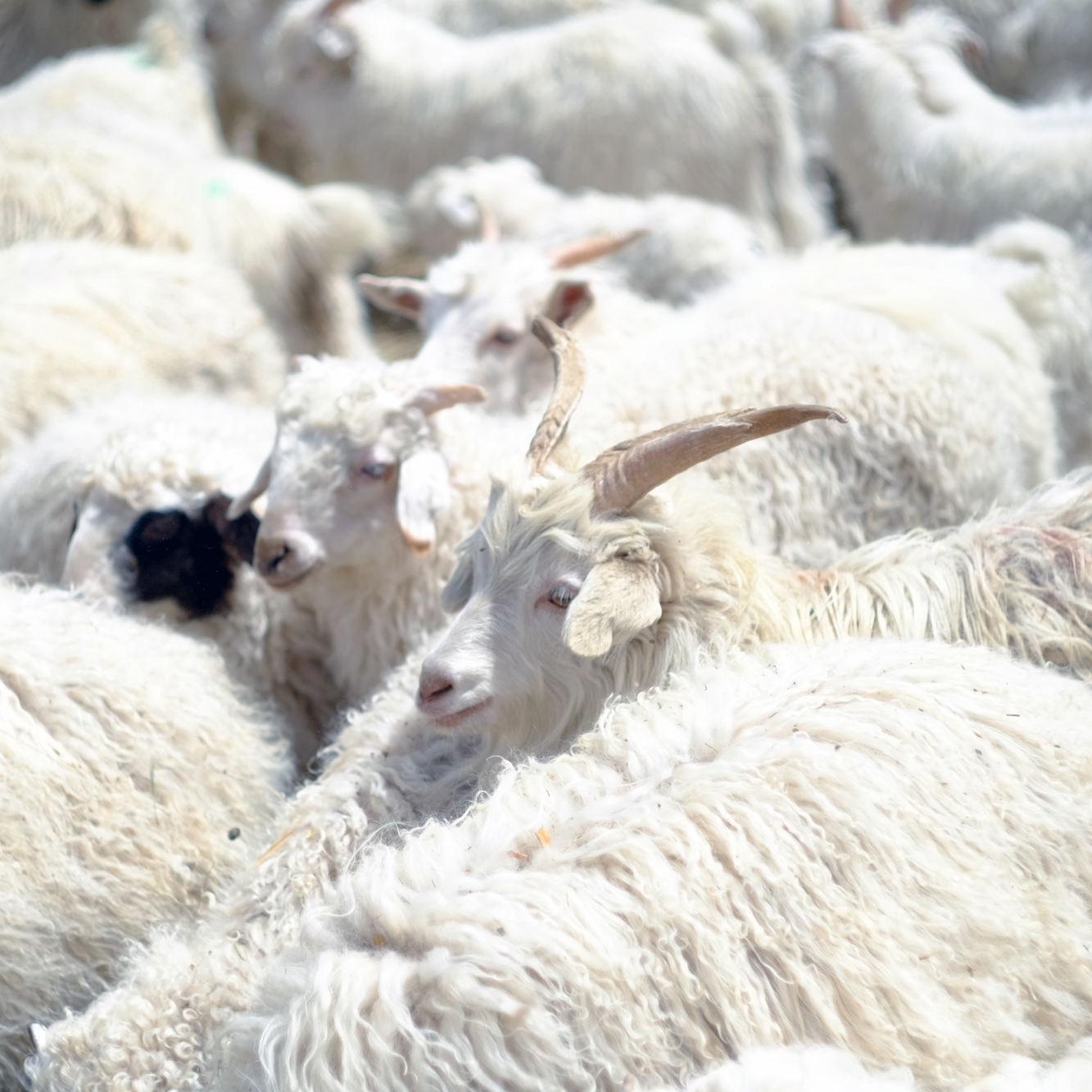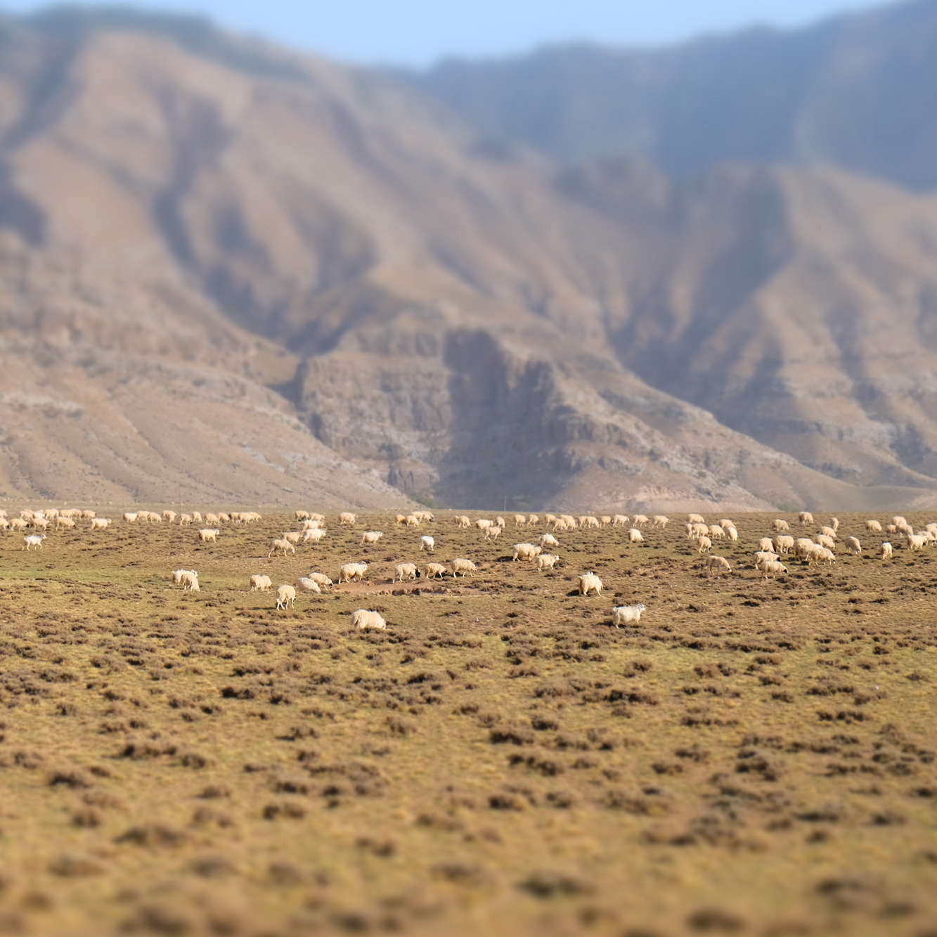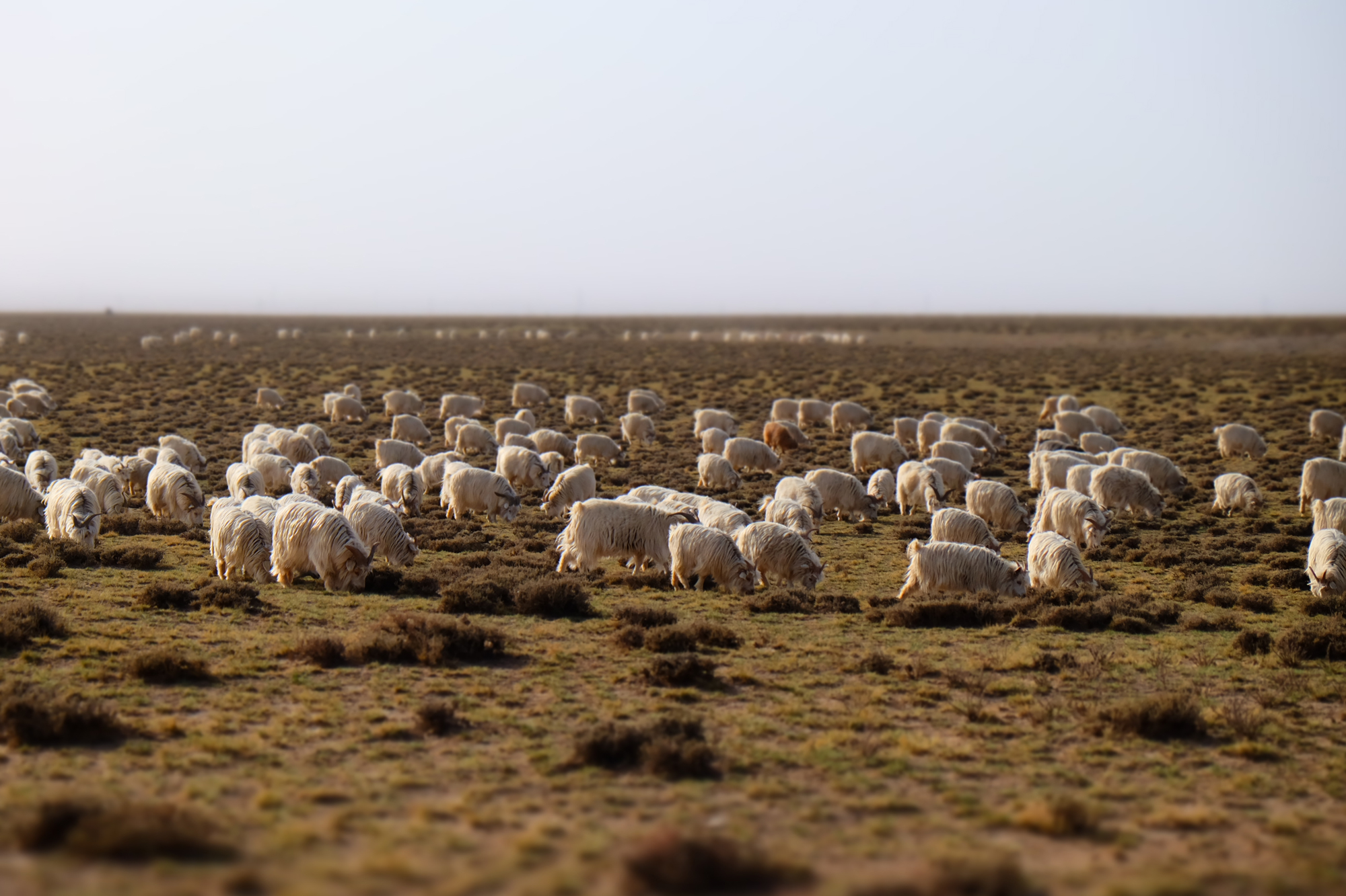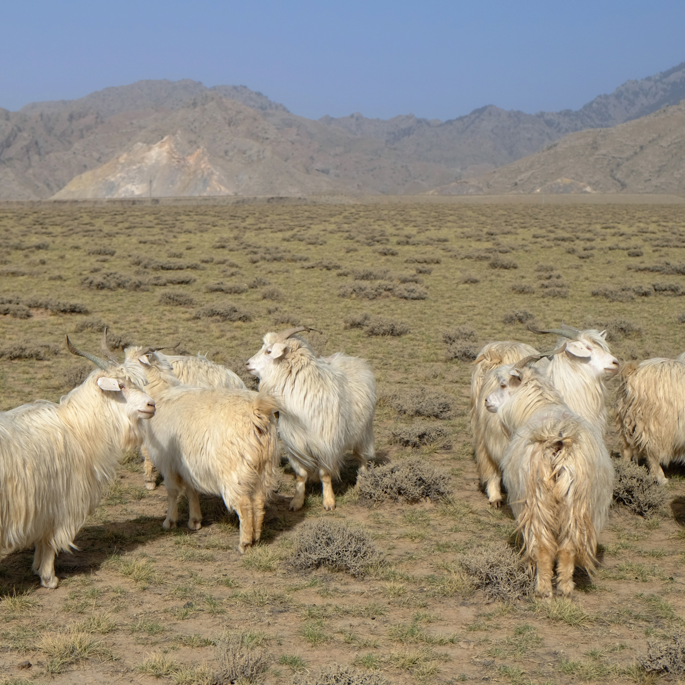 厳しい気候条件は、良質のカシミヤを生みます。 カシミヤ山羊の生息地域は、乾燥した冬夏の温度差が非常に大きい高地です。中でもアラシャンカシミヤが生息する中国内蒙古自治区西部は、典型的な砂漠、或いは半砂漠の草原、高地の岩山であり、気候は乾燥し、風が強く、植物の少ない地域です。年間降水量は、僅か100mm程で夏季の最高気温は40~42℃に達し、冬季の最低気温はマイナス30℃にまで至ります。この厳しい気候条件の中で真冬の寒さを凌ぐために生まれるうぶ毛が、カシミヤの中でも最高品質のアラシャンカシミヤとして産出されます。また良質のアラシャンカシミヤは、繊維が細く、白くて光沢があることでも知られています。