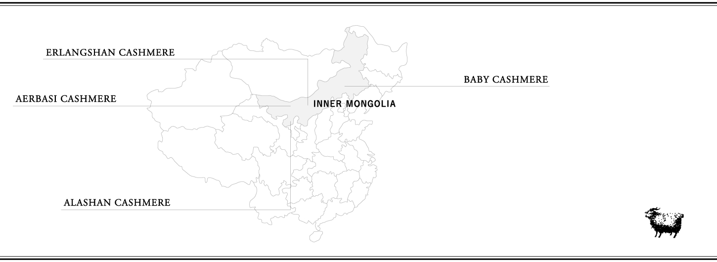 カシミヤ原料の品質は、カシミヤ山羊の品種と生息産地により大きく異なるといえます。冬期の気温は厳寒マイナス30~40℃、夏期は30℃以上と寒暖差がとても激しく、非常に厳しい気候条件の下で飼育されています。厳しい条件であればあるほど、そこで採毛される毛質は、良いものとされています。東洋紡糸では、最良質のカシミヤ原料を調達するために、優良品種が生息する産地の特定が最も重要な要素の一つと捉え、長い年月の中で培ってきた実績から、内蒙古産を中心に入手地区を限定して、うぶ毛繊維が細く、長く、白く、ぬめり感のある最良質原料の安定を図っています。世界最高基準で厳選しているカシミヤ原料を用いて、染色、紡績、撚糸の各工程を伝統的なクラフトマンシップにより、一本の糸へと丁寧に仕立てていきます。