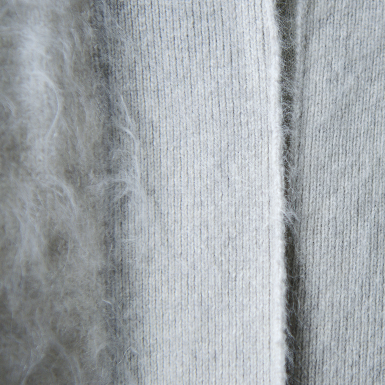 毛皮をイメージして、その風合いは生みだされました。 カシミヤ繊維の表面はスケールと称する鱗片で覆われている為に、水分や物理的作用の影響を受け、繊維同士の絡みが生じます。この現象は収縮や毛羽立ちに結び付くのですが、繊維の太さや長さの構成状態から毛羽の発生や収縮度合いなどが大きく変化し、繊維特性として、それぞれ特有の風合いや毛羽感を醸し出す背景になります。カシミヤ繊維のこの特性を生かして、繊維の長さとボリューム感を最大限に引き出したものが「FUR CASHMERE」です。カシミヤの豊かな表現力を象徴するファーカシミヤは、東洋紡糸独自の技術により、繊維を傷めずに滑らかで柔らかな毛羽感と風合いを生み出します。ファーカシミヤに用いる糸は弊社20番手のSAPNAAになります